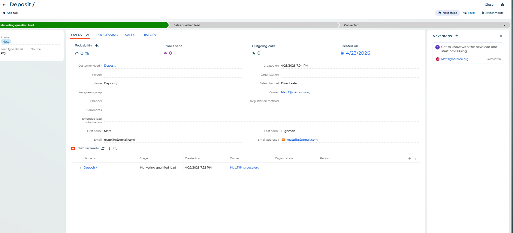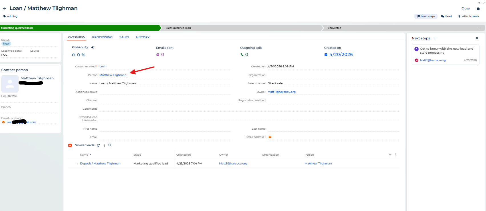 - Next Steps will then filter activities using the wrong column