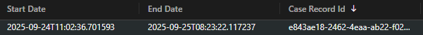 Hello, we are experiencing unusual behavior of OOTB Case Lifecycle object. In the example below you can see a discrepancy in the dates between record 10 and 9. Record no. 10 ends at 24/09/2025 12:02 while record no. 9 starts at 25/09/2025 09:23. This creates almost a day long gap in continuity of lifecycle.