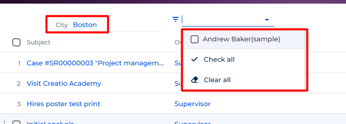 And this reloads quick filter dataset depending on the current conditions (in our case includes owner filtration by the owner's city):