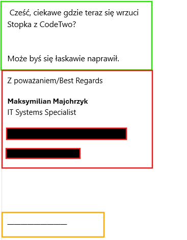 As we can see now, the email signature from CodeTwo is getting into middle of the text.