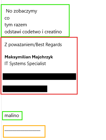 I have already consulted with the CodeTwo support team, and they have stated that their system is designed to always place the signature at the very end of the message content. They suggest the issue is likely on the Creatio side.