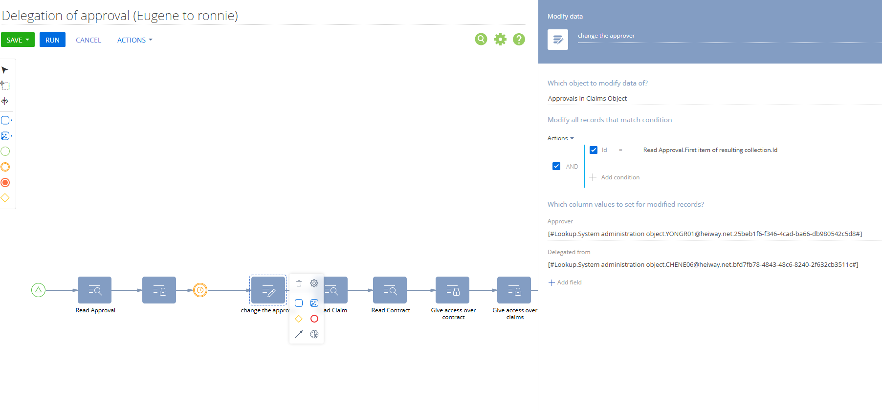 I am facing an issue in changing the approver and delegated from using the business process if that Business process is triggered by the user who is not in the role of System administrators.