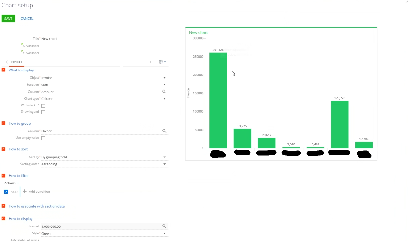 On the Case page, I want to add a chart showing the yearly sum of a numeric field, filtered by the contact who created the case, but I can't find a way to do this. If the chart object is Contact, the Column option cannot be selected the numeric field of the Case. If the chart object is Case, it cannot be filtered or associated with the Created By contact.