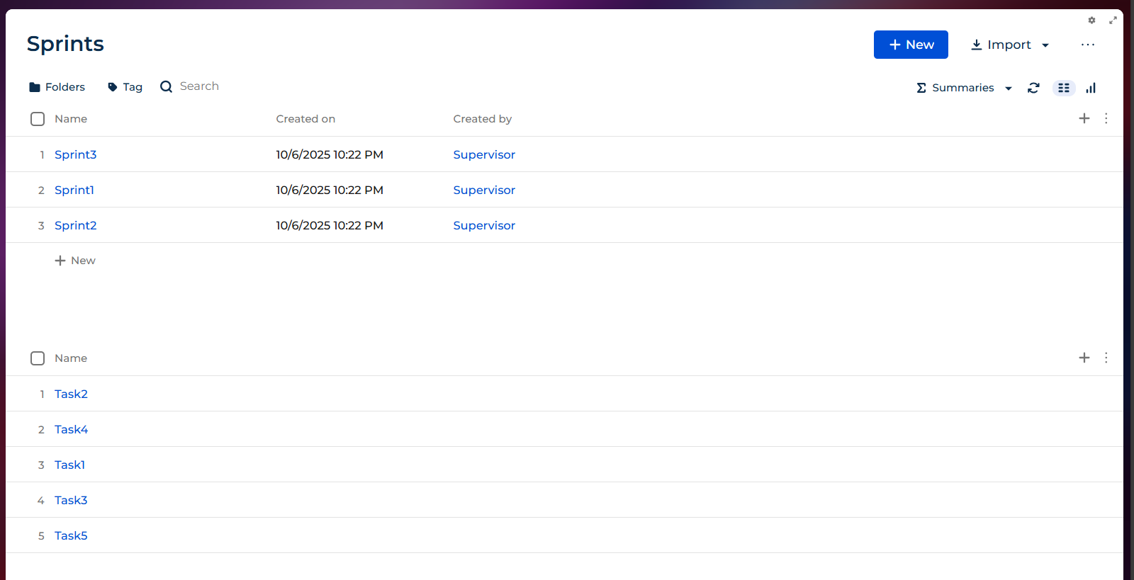 I added a list of tasks on sprint list page