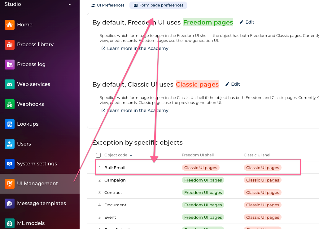 To use the classic screens for bulk email, go to the UI Management section, locate the area titled "Exception by specific objects" on the "Form page preferences" tab. Locate BulkEmail and change to use Classic (if BulkEmail is missing, just add a row for that). Then log out and back in again. Now it will work.