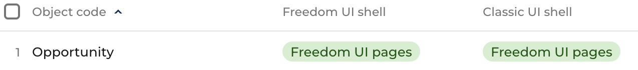 My UI for Opportunity in Classic and Freedom Shell are set to Freedom Pages.