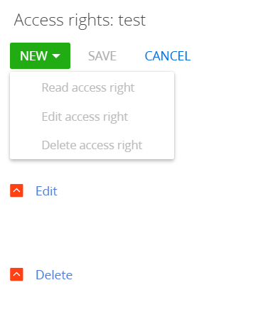 I am not able to add new access rights for a folder which i have created in the products section. It is showing the settings grayed out.