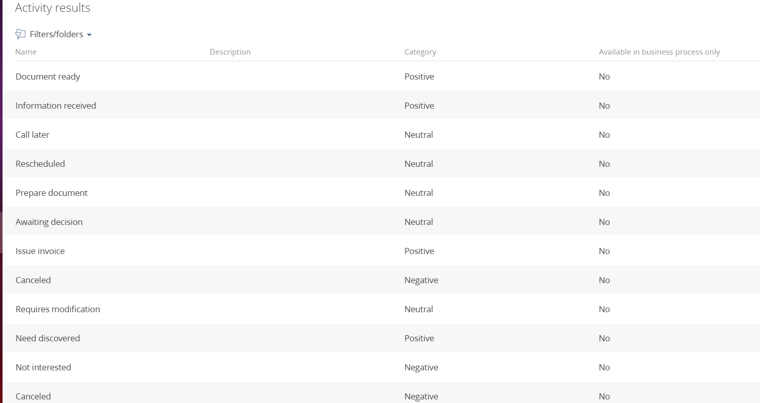 To change the list of available “Result” values in a task, you need to edit the lookup that controls them. Open the System Designer, go to Lookups, and find the lookup usually called “Activity results.” Open it and add or remove the values you need. The values you enter here are exactly the ones that will appear in the “If result” field when you complete a task.